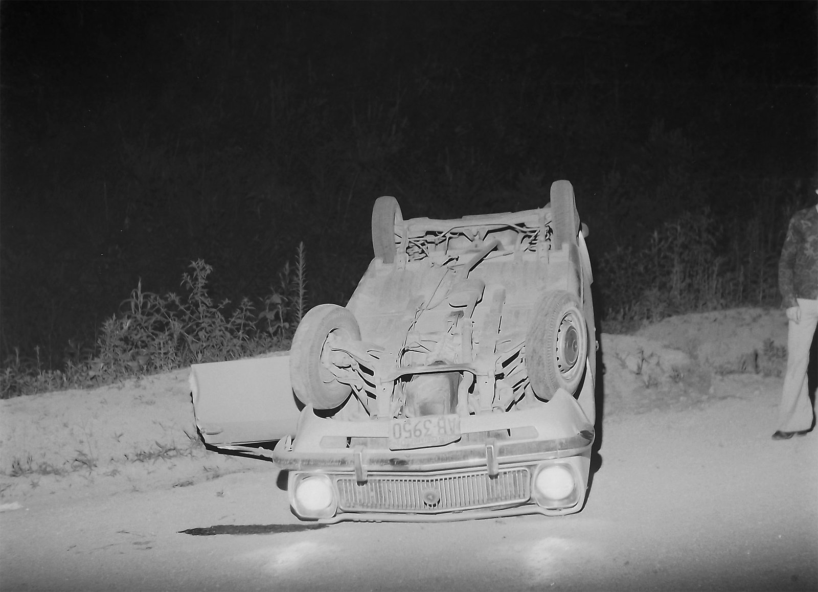 Acidente no trevo de Orleans-Urussanga 29/9/1968 – Acidentados: Silvio Quarezemin, Nivaldo Bussolo, Paulo Afonso Dalsasso, Adilson Leão Soares.