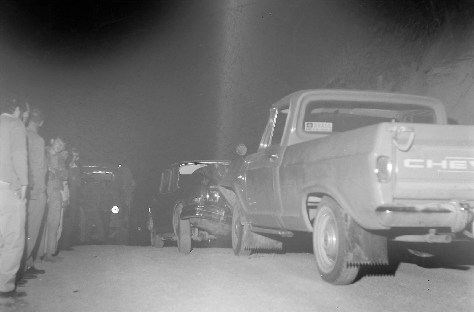 Acidente na estrada de Rio Laranjeiras com uma Rural conduzida pelo Cesar Bresciani (Pão) estavam juntos, Joãozinho Bussolo, Paladini, Foroti, Nive Bussolo, Paulo Afonso Dalsasso, Alcione Crozeta, Rudi Crozeta, Silvio Quarezemin – 8/1/1970